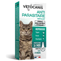 Vous avez remarqué que votre chat se gratte plus fréquemment ? Il est peut-être infesté de puces ou de tiques. Les parasites externes sont susceptibles de provoquer des problèmes de santé chez les animaux, allant de l'irritation cutanée à la transmission de maladies graves à d’autres congénères. Heureusement, Vetocanis a développé différentes méthodes antiparasitaires sous contrôle vétérinaire pour éradiquer les puces et les tiques qui peuvent aider à protéger votre félin de ces parasites indésirables.