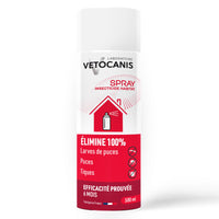 - Anti-puces pour habitat en spray à pulvériser dans des endroits spécifiques pour une action ciblée ou pour traiter les endroits difficiles d’accès,